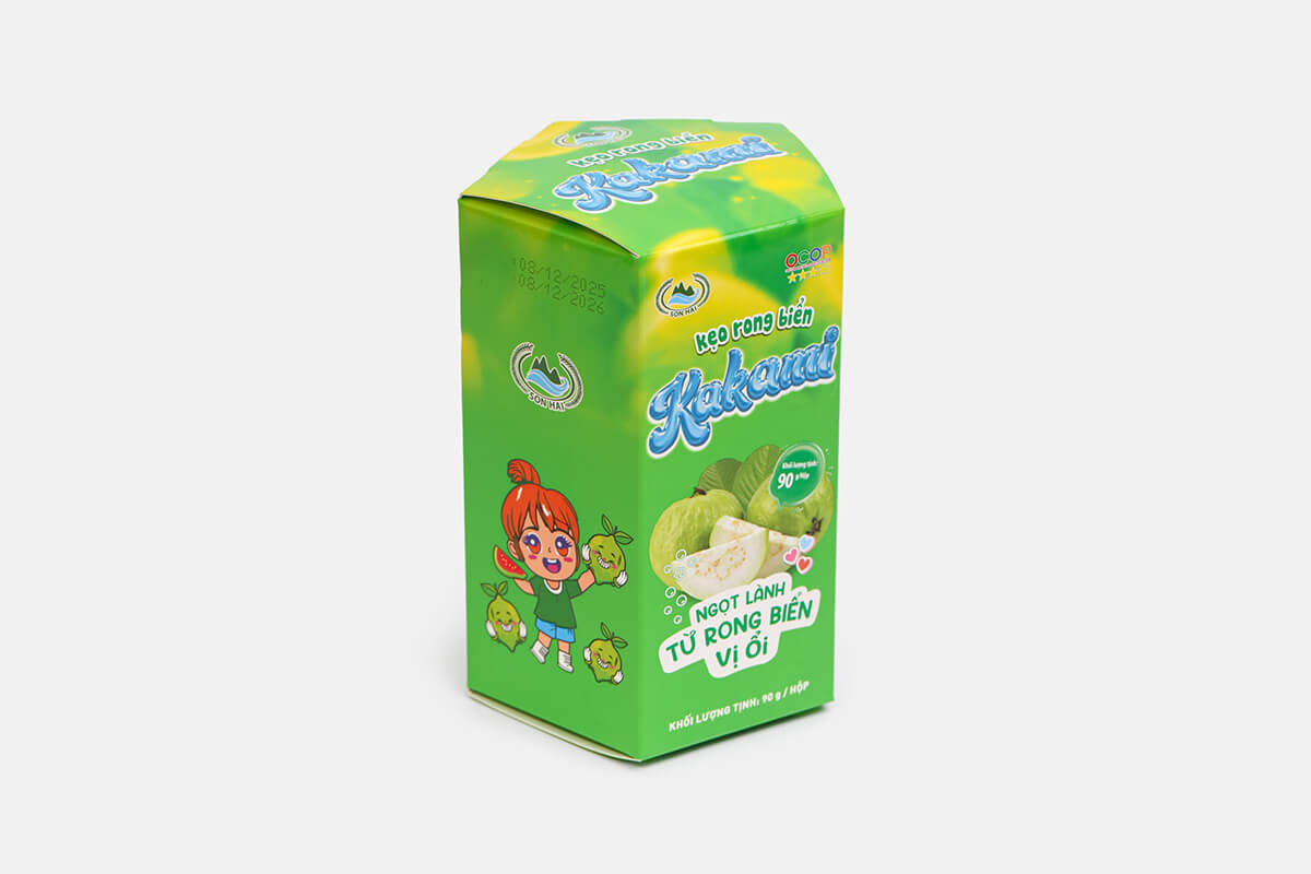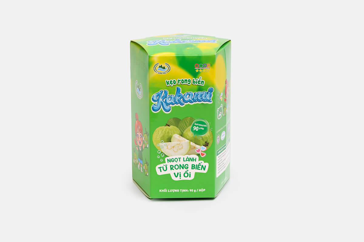 Hộp kẹo rong biển Kakami là dòng sản phẩm sáng tạo của Sơn Hải, kết hợp tinh túy từ rong biển tự nhiên và hương vị ổi thơm ngon.