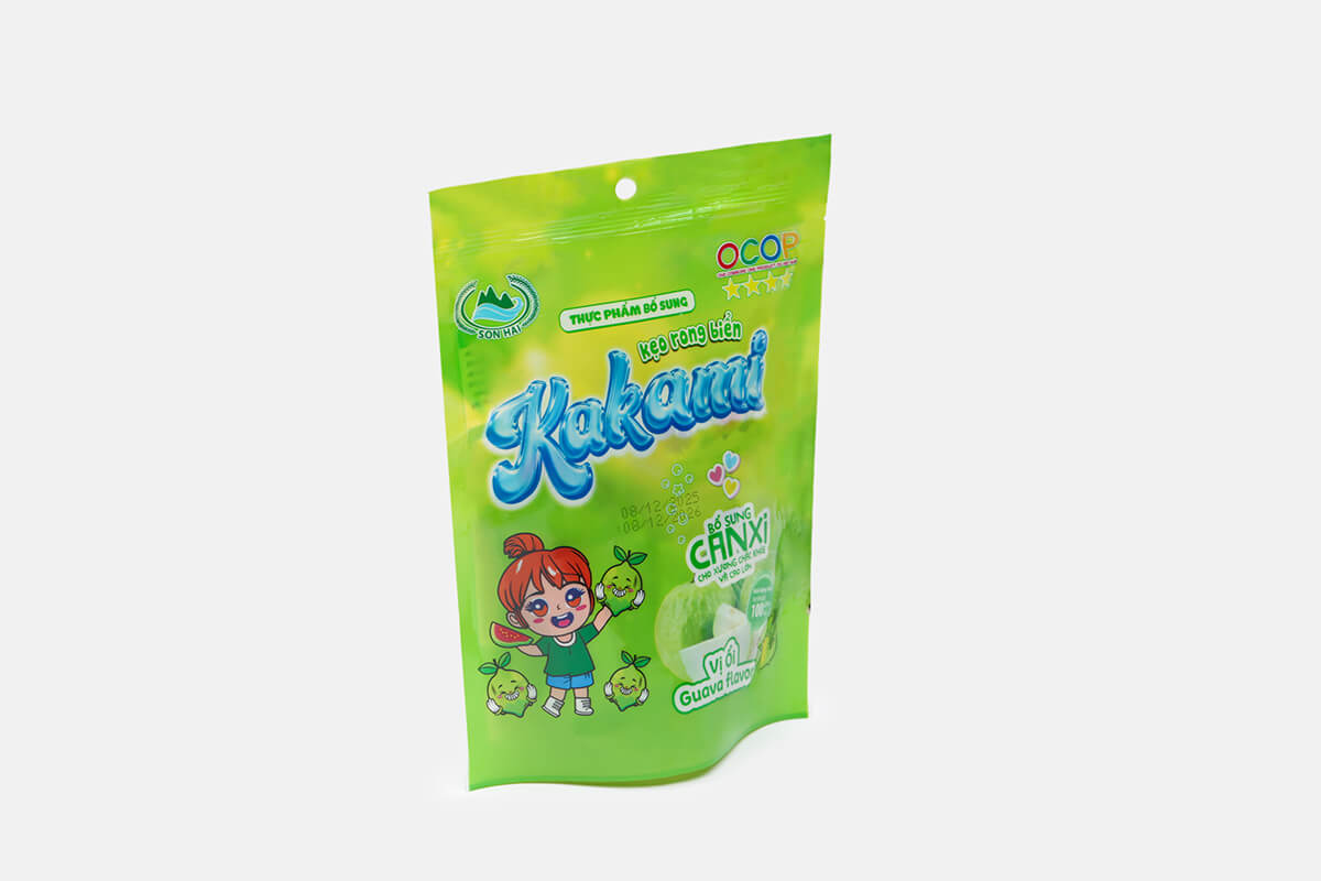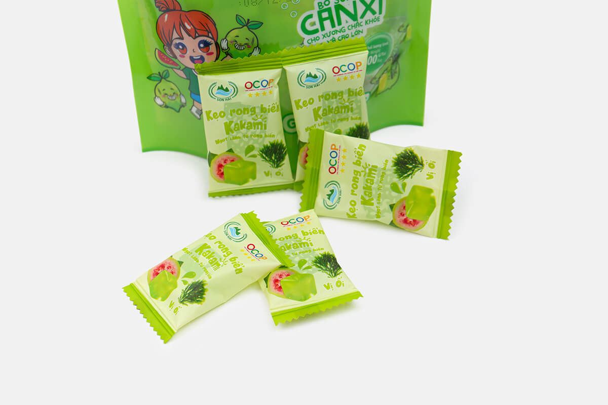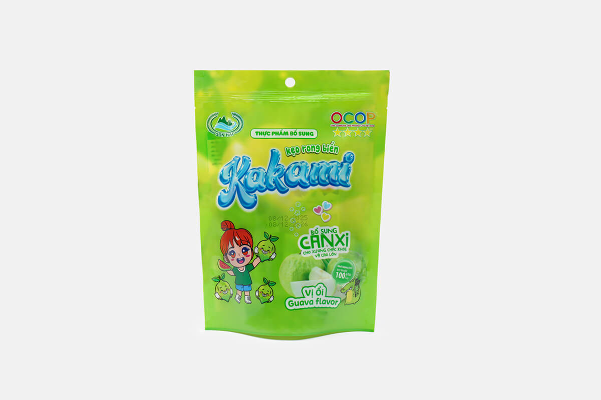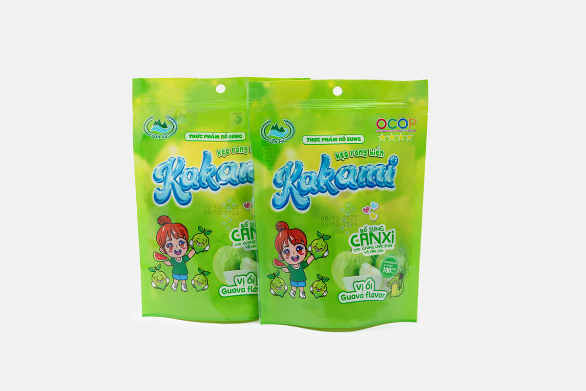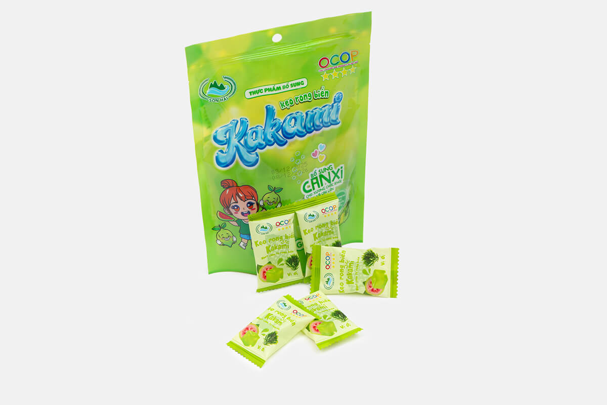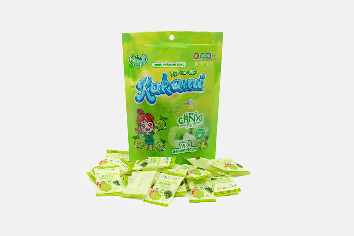 Kẹo rong biển Kakami là dòng sản phẩm sáng tạo của Sơn Hải, kết hợp tinh túy từ rong biển tự nhiên và hương vị ổi thơm ngon.