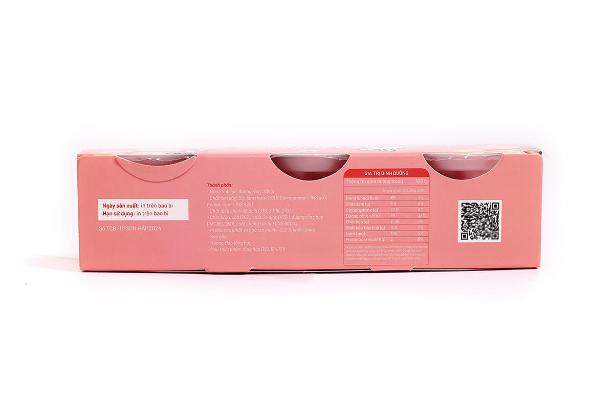 Quy cách đóng gói: Vỉ hộp 03 cốc (80g/cốc) với hương vị Đào